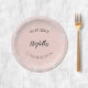 A rose gold, blush background with faux silver glitter, sparkles. The text: The name is written with a large modern hand lettered style script. Personalise and add a date, name.