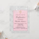 Faux silver blush pink coloured background decorated with faux silver glitter, sparkles. Personalise and add a name and the details. Black coloured letters.
