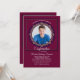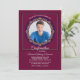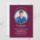 A burgundy invitation with a decorative, round, photo window within a decorative square. ( <a href='https://www.freepik.com/free-vector/abstract-happy-diwali-indian-festival-background-design_3296903.htm'>Designed by Creative_hat</a>. <a href='https://www.freepik.com/free-photo/happy-diligent-students_1365761.htm'>Designed by Freepik</a>). <br/><br/>The card is easy to customise with your wording, font and font colour.<br/><br/>Not exactly what you're looking for? All our products can be custom designed to meet your needs at no extra charge.<br/><br/>Simply contact us at askcottonlamb@gmail.com.<br/><br/>Coordinating products available: Just ask us!