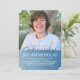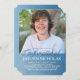 Your favourite photo is overlaid by a blue, gradient, transparent, panel that holds your personalisation. The words "confirmation of" can be dragged to any location, made larger or smaller (+-) or eliminated making this a versatile invitation.