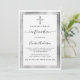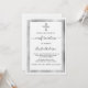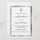 A modern, elegant and invitation. A white background decorated with a faux silver cross, and faux silver frames. Personalise and add a name and details. Black text.