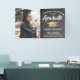 Add a personalised touch to college or high school graduation party decorations with this custom photo banner. Design features a dark grey chalkboard look background, faux gold foil mortar board, stylish modern typography, handwritten style script calligraphy, and a picture of the graduate, such as a senior picture or image from the commencement ceremony. Please note that gold is printed colour, not metallic foil. This party sign is an elegant way to celebrate the special day. Congratulations to the graduate!