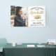 Add a personalised touch to college or high school graduation party decorations with this custom photo black, white, and gold banner. All text is simple to customise. Design features a white background, gold foil look mortar board, stylish modern typography, handwritten style script calligraphy, and one photo of the graduate, such as a senior picture or image from the commencement ceremony. Please note that gold is printed colour, not metallic foil. This party sign is an elegant way to celebrate the special day. Congratulations to the graduate!