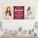 Add a personalised touch to college or high school graduation party decorations with this maroon, gold and white custom photo banner. Design features a burgundy red background, stylish modern typography, handwritten style script calligraphy, and 2 photos of the graduate, such as senior pictures or images from the commencement ceremony. Please note that gold is printed yellow colour, not metallic foil. This party sign is an elegant way to celebrate the special day. Congratulations to the graduate!