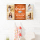 Add a personalised touch to college or high school graduation party decorations with this custom 4 photo collage orange, white, and silver banner. (IMAGE PLACEMENT TIP: An easy way to centre a photo exactly how you want is to crop it before uploading to the Zazzle website.) Design features an orange ombre background, faux brushed stainless steel mortar board, stylish modern typography, handwritten style script calligraphy, and four photos of the graduate, such as senior pictures or images from the commencement ceremony. Please note that silver is printed colour, not metallic foil. This party sign is an elegant way to celebrate the special day. Congratulations to the graduate!