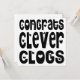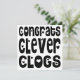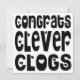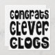 Say congrats loud and clear in funny style to the grad or anyone to be congratulated with this large bold typography Congrats Clever Clogs in a black funky font with heart motifs. Easily personalise with your message on the reverse. You can also change the white background to another colour if you wish as well as the font and colour for the greeting on the back via the Customise Further option.
