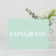 Congrats, Congratulations, seafoam mint green white modern Note Card.