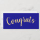 This festivetdesign features large centred "Congrats" written in festive, elegant warm yellow script text. The background of this modern minimalist design is deep rich royal blue.