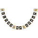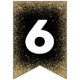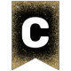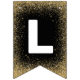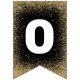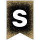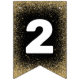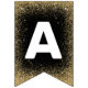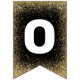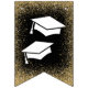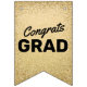 Elegant graduation party bunting featuring a black and gold theme, including stylish faux gold glitter, mortarboards, stars, the words "congrats grad" and the class year.