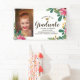 Celebrate your Graduate with this beautiful yet durable banner featuring her photo, name, school and class of year framed by a pretty floral border. Hang this sign in the house, from the balcony, garage, between two trees, etc. Trendy and stylish yet classic and elegant, this generously sized banner will certainly make a statement as you welcome guests to your graduation party.