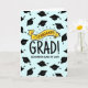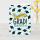 Celebrate any graduate with this fun, custom patterned greeting card! It features "Congrats Grad" with a waving gold banner surrounded by black graduation caps thrown in the air. Personalise this unique design with the graduate's name and class year. The pastel blue background can be changed to any colour your prefer. It's the perfect card for high school graduates, college graduates or any grad! Celebrate their achievement with a one of a kind greeting card!