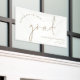 Congrats to our Grad Gold Script Graduation Announcement A minimalist design with gold writing to announce the news of your graduate, has informal set handwriting style script for grad, diagonally across the middle and easily personalise the rest of the words.