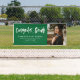 Congratulate the graduate! This banner features a place for a photo of the grad along with a trendy and modern "congrats grad" and custom text that can include name, school, year and future plans in white. Makes a great graduation yard sign to celebrate your senior and also works and graduation party decor. The default colour is green, but that's editable to your school colour by clicking "customise." Check out the Lea Delaveris Design graduation collection for coordinating items.