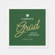 Simple and modern graduation napkin in green and gold. The design features the word "grad" in elegant gold handwriting script against a dark green background. Personalise these Grad party napkins with the name and year of the graduate.