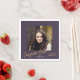 This graduation party paper napkin features a square picture and is accented with gold script text on a dark purple background. The script text reads: Congrats Grad. Personalise with your favourite senior photo for a fun accent to your grad party celebration.