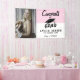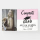 Congrats Grad Pink Photo Graduation Party Banner. Celebrate your grad with this awesome banner with a photo. Graduation party banner with graduation cap, text Congrats Grad, a name of the graduate, school name and Class of - personalise with your data. White and pink background. Make your own graduation party banner.