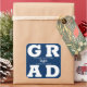 GRAD in bold white letters fills the corners of these navy blue background grad square stickers. Congratulations above the name of your graduate and the Class of below. SEE ENTIRE COLLECTION of pre-done colour combinations, invitations, paper plates, napkins, signs and more in our store.