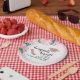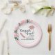 These custom white and pink floral graduation paper plates for the class of 2025 graduate feature a Congrats Grad saying, graduate's cap and diploma illustrations, and template to type the grad's name, year and school name.