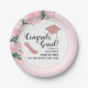 Congrats Grad White Pink Floral Graduation Paper Plate