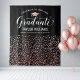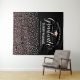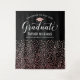 Send off your grad in chic style with this black and rose gold confetti graduation backdrop! The design features "Congrats to Our Graduate" in flowing white script, a rose gold grad cap, and personalized fields for the graduate's name and school above a cascade of shimmering rose gold confetti dots on a sleek black background. Customize all text for a glamorous celebration centerpiece. Perfect as a photo wall, dessert table, or party focal point.
