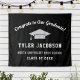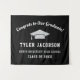 Send off your grad in chic style with this black and silver graduation party backdrop! The design features "Congrats to Our Graduate" in a flowing white script header, a polished silver grad cap, and personalized fields for the graduate's name, school, and class year on a rich black background. Customize all text for a modern celebration centerpiece. Perfect as a photo wall, dessert table, or party focal point.