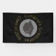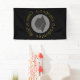 A graduation banner which says Congrats Graduates, Class of 20xx written in a gold colour and curved around an illustration of a black graduation cap inside by a semi-transparent white circle. Black background with gold lettering is simple yet stylish.