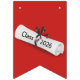 CONGRATS in bright white 2025 graduation with white diplomas tied with a black bows and ribbons on a red background.