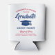 Add a  personalised touch to college or high school graduation party decorations with red, white and blue can coolers.  Design features a white background, blue mortar board cap, stylish modern typography, handwritten style script calligraphy, and a customisable message reading "Congratulations to our Graduate".  Text at the bottom includes class year, school name, and an optional line for degree, honours, or other info.  All text is simple to customise. These elegant favours make a stylish graduation celebration drink idea. Cheers!
