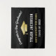 Congratulate your graduate in style with a modern personalized graduation party photo backdrop sign, featuring their class year with gold colored grad cap, and sporty custom text for the grad's name, school, and class year. Black, white, and gold colors can be customized to match your party colors.
