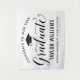 Elegant graduation party backdrop sign congratulates and celebrates your grad in style! Design features a grad cap, "Graduate" in script, and modern custom text that can be personalised with the graduate's name and school. Black and white colours can be customised.