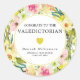 Colourful yellow daffodils and pink flowers create a sweet border around this valedictorian sticker. Congrats to the Valedictorian is written in a classic serif font just above a yellow heart. The graduate's name, school and graduation year are written below. A thin yellow frame surrounds the white centre circle. All of the text can be changed. You can also change the colour and font of the text. This graduation sticker is part of the Yellow Daffodil collection. It contains invitations and party supplies to make your party planning easy. You should see a link to the collection on this page. If you don't see the link or you need help with an item, please contact me.
