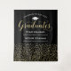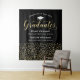 Elegant black graduation party backdrop two graduates features a white colored grad cap, "Graduates" in faux gold foil colored script, and modern custom text that can be personalized with the graduates' names and schools. A pattern of gold falling confetti dresses up the background - perfect party prop for guests to stand in front of for pictures with the grad! Multiple Sizes are available.