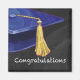 You or someone you know is graduating! Yay! Send along your congratulations with our stylish design featuring our original art of a blue graduation cap with a yellow tassel against a textured black background and the word, Congratulations on the bottom. Custom designs available.