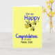 Congratulation on a new job with the text I'm so happy for you in blue and black with 3 cartoon bee's and yellow background.