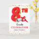 For him, Congratulations on 8th Grade Celebration graduation, paper greeting card. A large 8th balloon in red and gold with a graduation diploma and gold stars. Customise by adding a name to the cover. Art, image, and verse copyright © Shoaff Ballanger Studios, 2025.