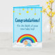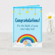 A lovely congratulations greetings card featuring a lovely digital design of a baby boy asleep under a rainbow and cuddling into some fluffy white clouds. With the words "Congratulations! On the birth of your new baby boy!" You can customize the text to whatever you wish and the inside is left blank for your own message.