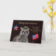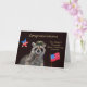 Congratulate someone on completing basic training with an adorable racoon smiling, wearing a military hat next to an American flag and a cute star. Background is a pretty burgundy. Let them now how proud we are of them and how much they are appreciated.
