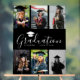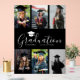 Celebrate your graduate and identify the party location and welcome guests with this modern 6 photo display sign in black and white featuring a modern handwritten script typography Congratulations accented , graduation cap and personalised with your custom text, graduate's name, school and class year against white background. ASSISTANCE: For help with design modification or personalisation, colour change,