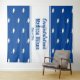 This deep blue photo backdrop has a pattern of white graduate's caps in the background. In the centre, there's display text you can personalise with a custom message, the graduate's name. and the class of year. The text is also deep blue.