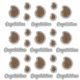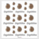 Twenty-one photos of a slice of a brown agate geode in two sizes are scattered across this sheet of stickers with nine "Congratulations" texts. These stickers can be replaced with your own cutout photo of a flower to make personalised stickers or the words can be changed to your own message. If you need help personalising, please contact me at jen@jenaleefamilystorykeeper.com