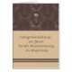 Congratulations card for a business celebrating their 10th anniversary. The design is an elegant brown and gold pineapple design. The pineapple is a sign of welcome.
