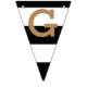 A black and gold striped bunting banner design with the word "congratulations" that can be personalised with your wording and colours.