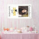 This vertical banner features a graduation design with a photo frame for a picture of the graduate. Personalise this simple banner by adding the name of the graduate. The text reads: Congratulations! Class of 2018 Grad. A black mortarboard sits on top of the zero in the year.