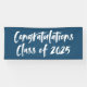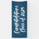 Modern graduation banner featuring "Congratulations Class of 2025" in a white brush script with a navy background or colour of your choice. The navy graduation banner is designed to coordinate with our Abstract Brushstrokes graduation collection.
