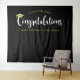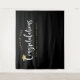 Send off your grad in luxe style with this horizontal black and gold graduation party backdrop! The design features "Class of" in gold lettering, "Congratulations" in flowing white script, a gold grad cap, and a personalized school field on a rich black background. Customize all text for a glamorous celebration centerpiece. Perfect as a photo wall, dessert table, or party entrance focal point.