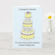 A pastel colored tiered wedding cake and the words 'Congratulations to a Dear Friend and hisusband on their Wedding Day'.