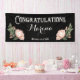 Wonderful and beautiful retirement party banner. Features pink flowers with green leaf accent. You can honour the retiree by monogramming this retirement banner just for her. Perfect for teachers and other professionals retiring from the work force. Use as a party decoration or part backdrop. Elegant black background accents the flowers and your honorees name.