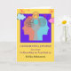 Congratulations on your fellowship in psychiatry, paper greeting card. A colourful illustration of human head profiles with various symbols such as a gear, clouds, brain waves, and synapses. Customise all of the text areas on the cover as needed. Art, image, and verse copyright © Shoaff Ballanger Studios, 2025.
