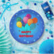 Congratulations! Festive celebration design with balloons and blue starry sky. "Happy Birthday" is a template which means you can leave as-is or insert your own message.