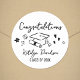 Add a polished finishing touch with this round sticker featuring “Congratulations” script and playful graduation doodles (cap, diploma, hearts, and flowers). The clean black-and-white style works perfectly as a favor sticker, treat bag seal, or envelope sticker for announcements and grad party invitations. Personalize with the graduate’s name and class year for a cohesive, custom look.